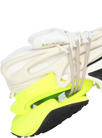 Neoprene and calfskin Unicorn low-top sneakers White laces on top, thick platform soles, openworked area with outline on sole and lion's head snap button on topFits true to size: select your usual size Made in China Materials: Neoprene, Calfskin Item: YM1VJ309KNES