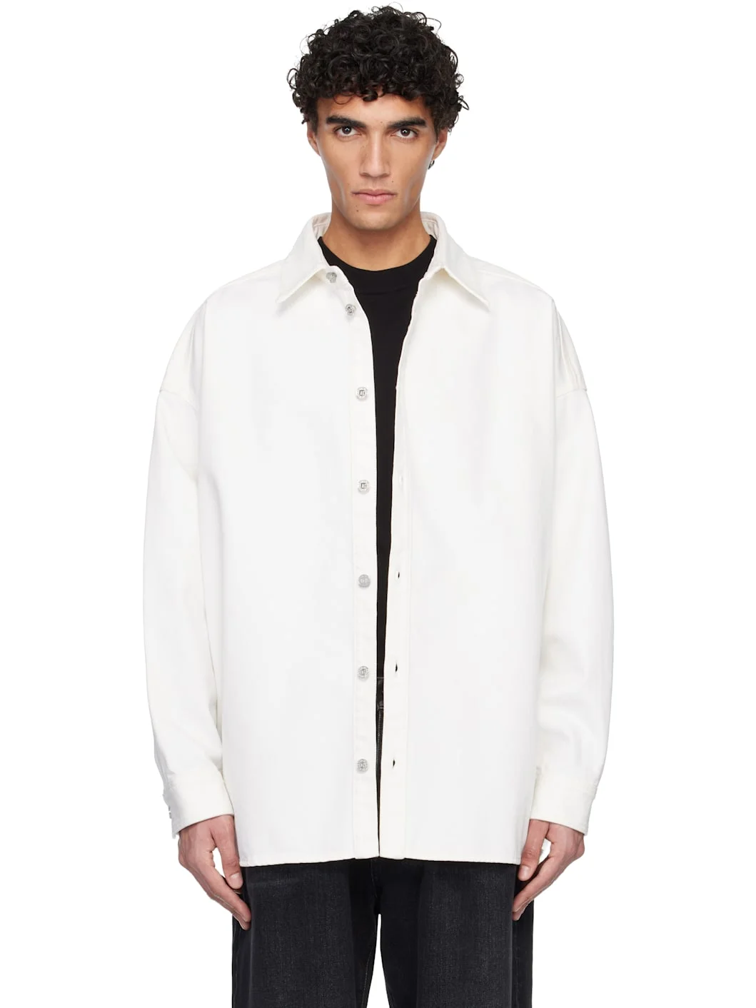 Non-stretch denim overshirt. · Spread collar · Button closure · Shirttail hem · Dropped shoulders · Barrel cuffs · Logo embroidered at back collar Supplier color: Blanc 100% cotton. Made in Italy 261251M192000
