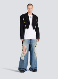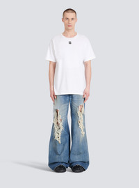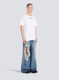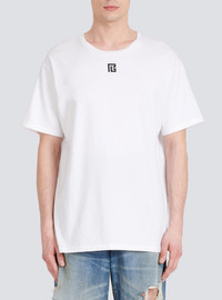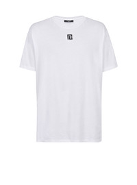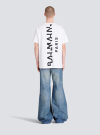 Oversized cotton T-shirt - Wide cut - short sleeves - crew neck - maxi black Balmain logo print on back - Casual cut - Fits true to size: select your usual size - The model is wearing size M - The model's height is 186 cm - Material: 100% Cotton - Made in Portugal - Item: YH1EG010BB69
