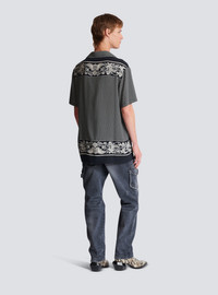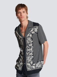 Paisley and mini monogram printed silk shirt - Relaxed, flowing fit - Pyjama collar - Short sleeves - Fastening with 5 silk-covered buttons - Plain contrasting piped finish - Model measures 187cm and wears a size 48 - Main material: 100% viscose - Made in Italy - Item: CH1HR095VE23100% of the viscose fibres used to make this garment come from responsibly managed and FSC®-certified forests