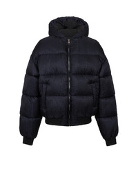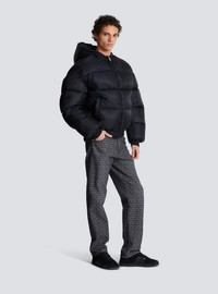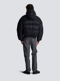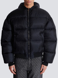 PB Labyrinth jacquard nylon puffer jacket - Cropped loose fit - Round neck with hood - Long sleeves - 2 side slash pockets - Zip fastening, Balmain Paris-engraved slider in silver metal - Ribbed edging - Inside pocket with press stud - Lined jacket - Pierre Balmain logo integrated into the print - Model measures 189cm and wears a size 48 - Main material: 100% polyamide - Made in Moldova - Item: DH1TP160XB11