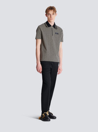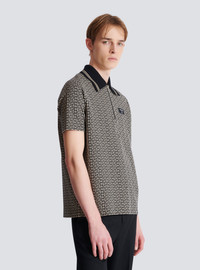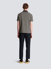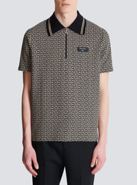 PB Labyrinth jacquard polo shirt - Contrasting polo collar with stripes - Zip fastening, engraved silver metal slider - Short sleeves - Woven Balmain Couture label on the chest - Straight cut - Model measures 187cm and wears a size M - Main material: 95% cotton 5% elastane - Made in Portugal - Item: EH1GC027BC90100% of the cotton fibres used to make this garment are certified and organically farmed
