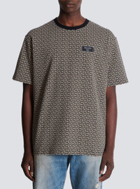 PB Labyrinth jacquard T-shirt - Round neck with contrasting ribbed trim - Short sleeves - Woven Balmain Couture label on the chest - Regular fit - Model measures 187cm and wears a size M - Main material: 95% cotton 5% elastane - Made in Portugal - Item: EH1EG010BC90100% of the cotton fibres used to make this garment are certified and organically farmed