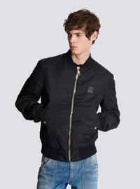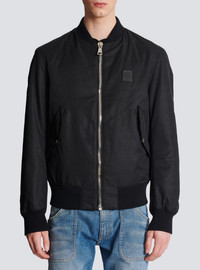 Nylon bomber jacket - Embossed PB logo on the leather insert on the front - XL Balmain logo printed on the back - Silver metal zip fastening at the front - 2 side pockets with press stud-fastened flaps - Silver metal details - Ribbed neck, cuffs and waist - Model measures 187 cm and wears a size 48 - Main material: 100% polyester - Made in Italy - Item: CH1TF445XG49