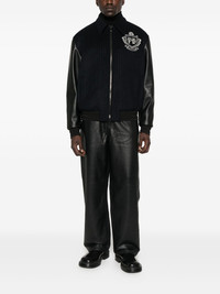 pinstripe-print panelled bomber jacket Highlights - Black - Pinstripe pattern - Long sleeves - Emblem detail - Front zip fastening - Ribbed hem Imported Composition Fabric 100% SIZE & FIT Model measurements Height 6 ft 0 in(1.84 m) Bust/Chest 37.79 in(96 cm) Hips 37 in(94 cm) Waist 31.49 in(80 cm) Washing instructions Read Manufacturer Guidelines
