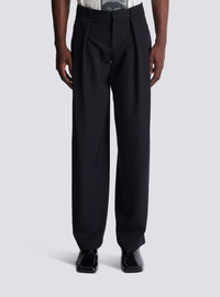 Pleated grain de poudre trousers - Loose fit and regular waist - Waistband - Triple belt loop on the back - Zip and hook fastening under a placket - 2 slash side pockets - 2 slash pockets on the back - Model measures 190cm and wears a size 48 - Main material: 100% virgin wool - Made in Slovakia - Item: DH0PQ305WC09100% of the wool fibres used to make this garment are sourced from sheep farms that are certified and animal welfare-friendly