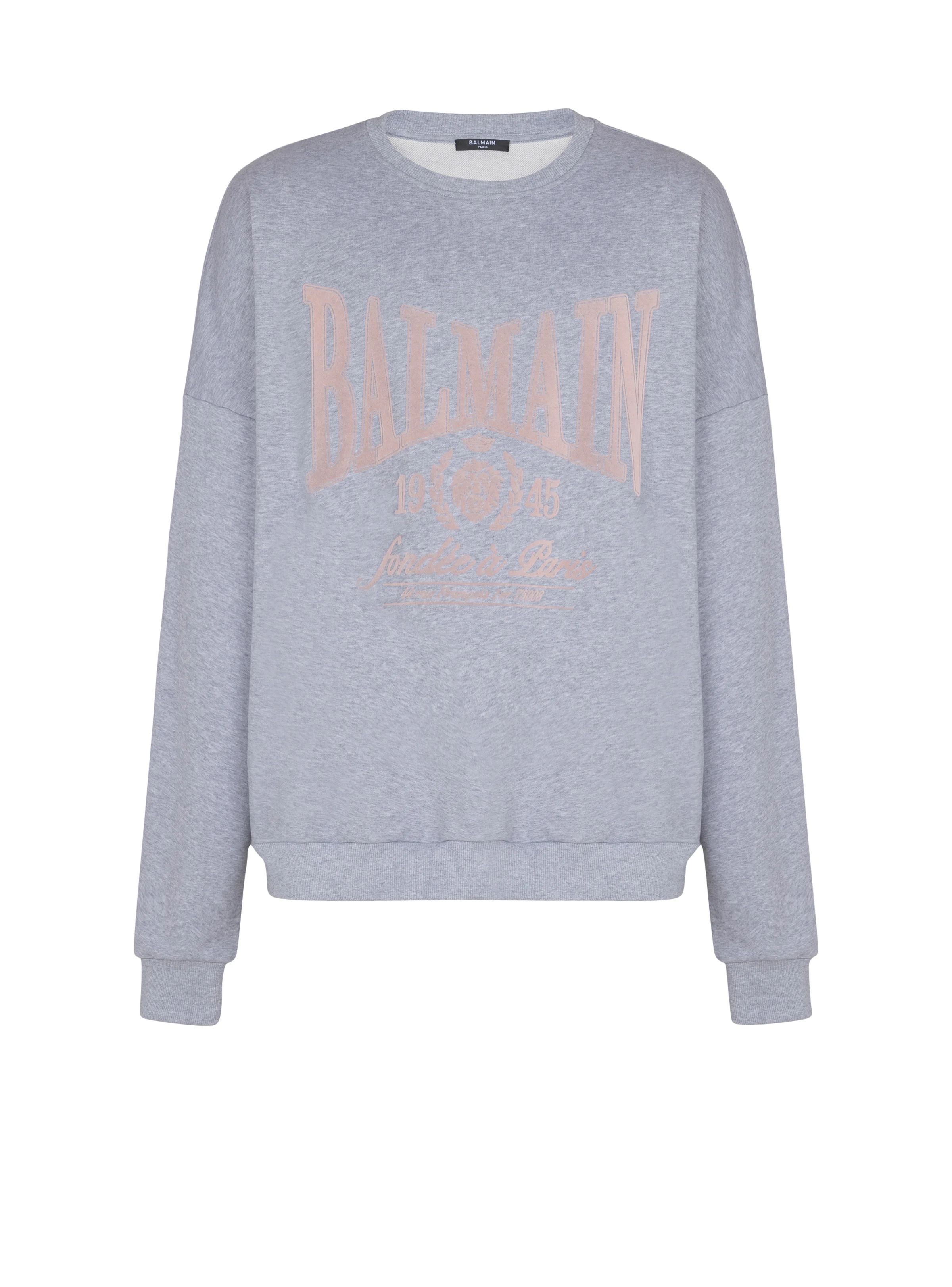 Relaxed cotton jersey sweatshirt - Round neck - Long sleeves - Flocked Balmain 1945 logo on the front - Ribbed edging - Relaxed fit - Model measures 190cm and wears a size M - Main material: 100% cotton - Made in Portugal - Item: GH1JS191GF54100% of the cotton fibres used to make this garment are certified and organically farmed