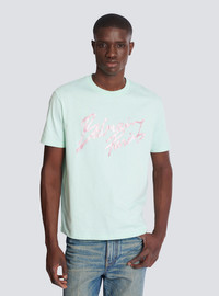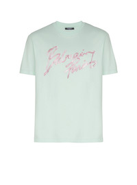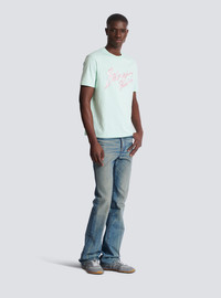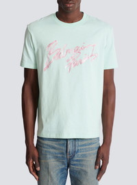 T-shirt with Balmain Paris Brush print on the chest - Round neck - Short sleeves - Cotton jersey - Regular fit - Model measures 189cm and wears a size M - Main material: 100% cotton - Made in Italy - Item: GH1EG000BD41100% of the cotton fibres used to make this garment are certified and organically farmed