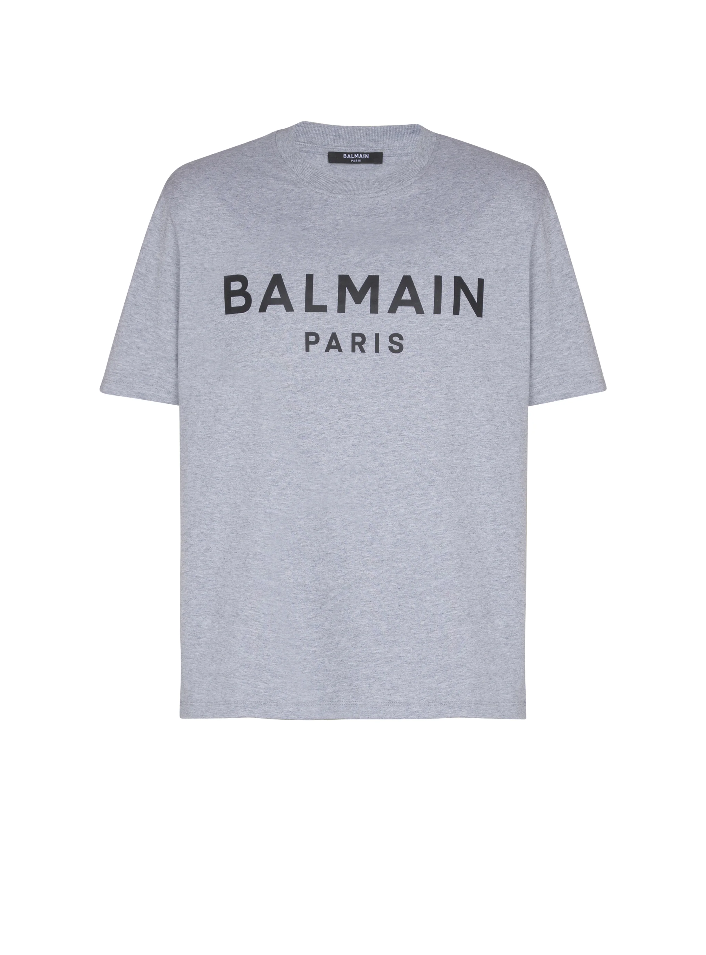 T-shirt with Balmain Paris print on the front - Round neck - Short sleeves - Cotton jersey - Regular fit - Model measures 190cm and wears a size M - Main material: 100% cotton - Made in Portugal - Item: GH1EG000BD46100% of the cotton fibres used to make this garment are certified and organically farmed