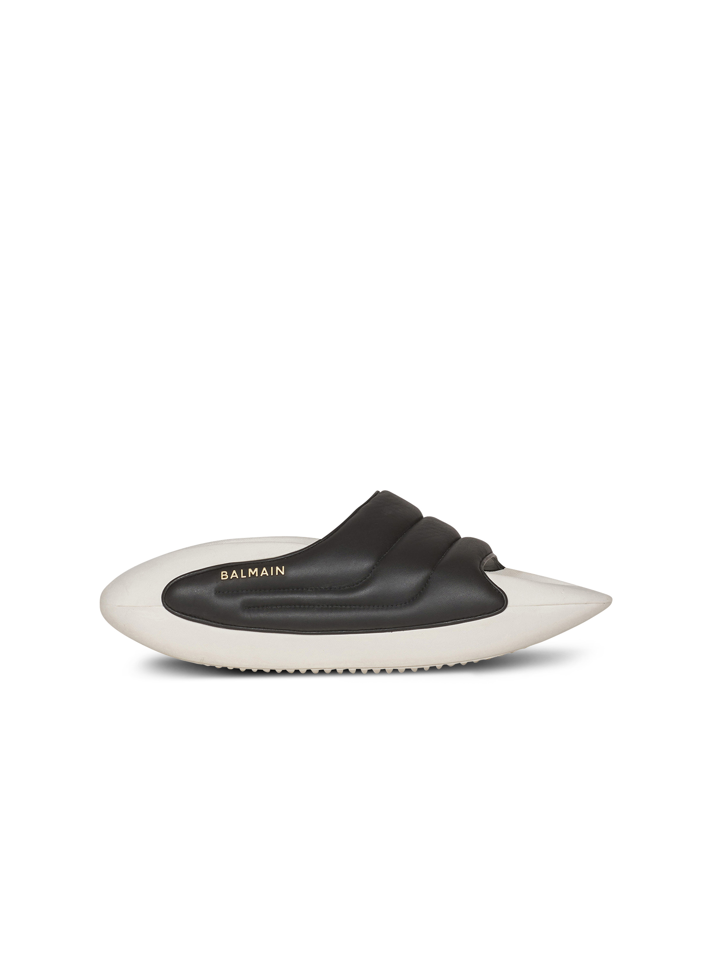Quilted leather B-IT mules Thick platform soles in EVA, gold-tone Balmain logo Fits true to size: select your usual size. Made in China Material: Lambskin Item: XM0VL299LPQP