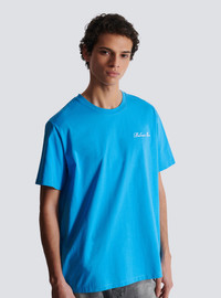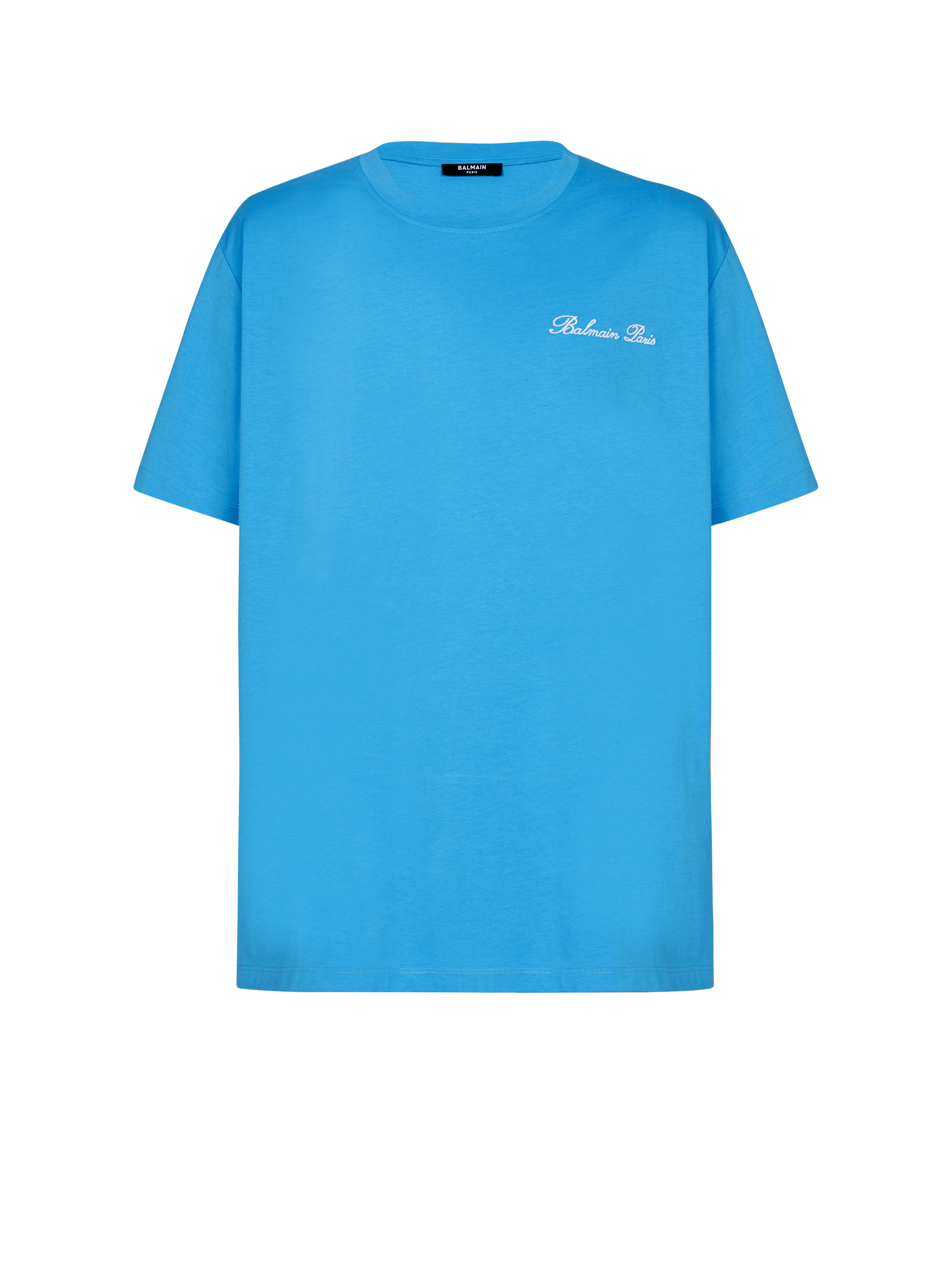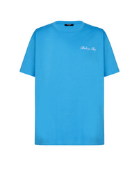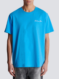 Relaxed T-shirt with Balmain Signature embroidery - Round neck with ribbed trim - Short sleeves - Contrasting Balmain Signature logo embroidered on the front and back - Model measures 190cm and wears a size M - Main material: 100% cotton - Made in Portugal - Item: DH0EG010BC68100% of the cotton fibres used to make this garment are certified and organically farmed