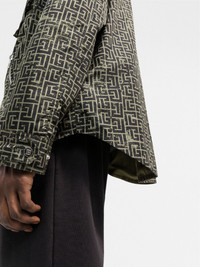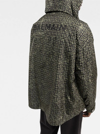 repeat-logo parka khaki green logo print to the rear all-over logo print classic hood front button and zip fastening long sleeves front zip fastening pockets rear curved hem Made in Italy Composition Outer: Polyamide 100% Lining: Polyester 100%, Polyamide 100% SIZE & FIT Model measurements Height 6 ft 1 in(1.85 m) Bust/Chest 34.64 in(88 cm) Hips 34.25 in(87 cm) Waist 27.55 in(70 cm) FittingInformation This piece fits true to size. We recommend you get your regular size Cut for a loose fit Made with a mid-weight non-stretch fabric