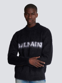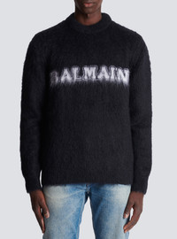 Brushed mohair jumper - Retro Balmain logo on the front - Loose fit - Ribbed cuffs, waist and collar - Model measures 189cm and wears a size M - Material: 60% mohair, 25% polyamide, 11% virgin wool, 4% wool - Made in Italy - Item: BH0KD000KF38