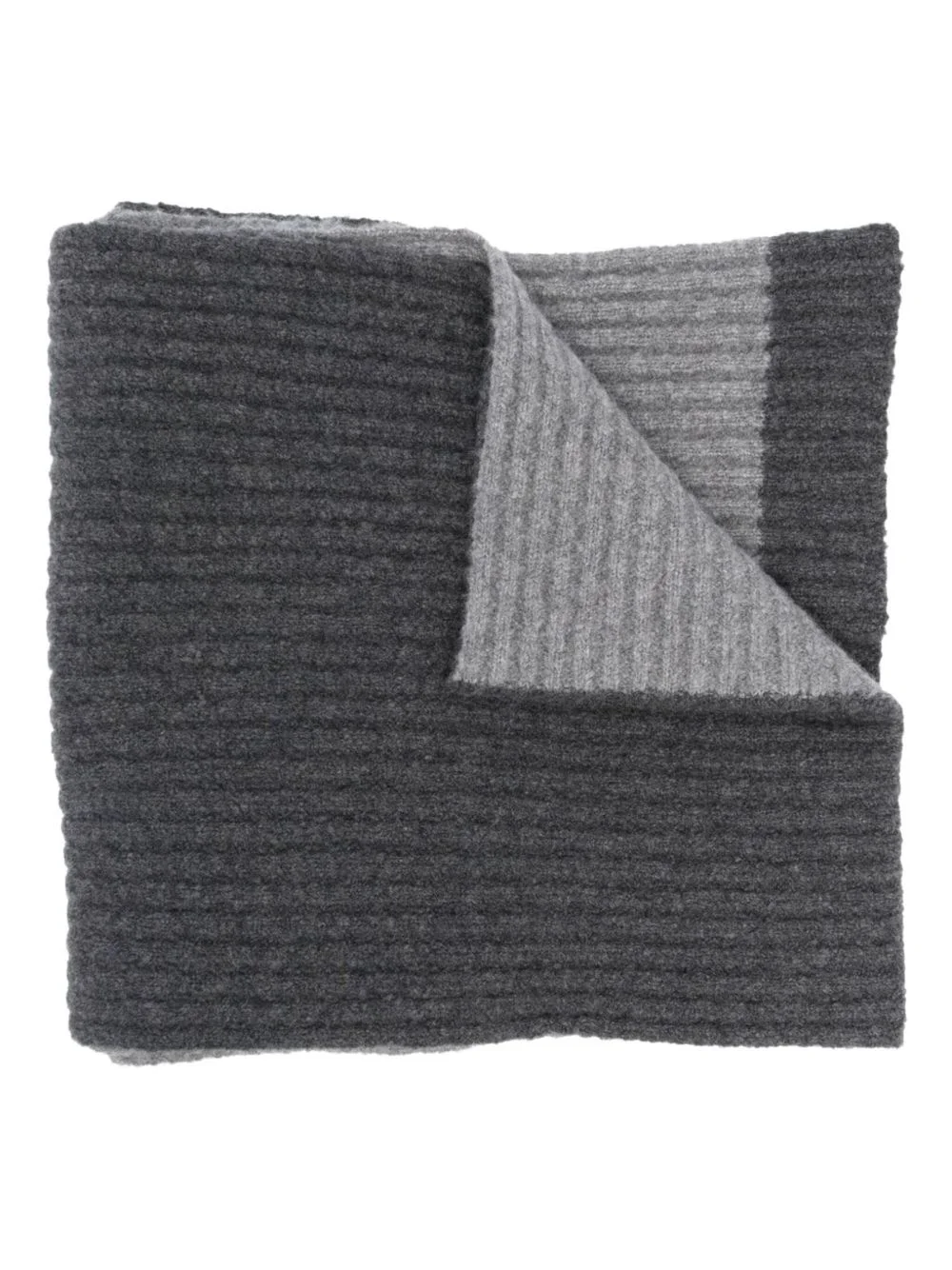 ribbed reversible scarf Highlights - Charcoal grey - Ribbed texture - Contrasting grey side - Relaxed drape - Logo patch detail Made in Italy Composition Cashmere 100%, Wool 100%