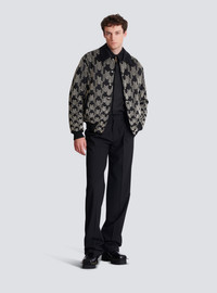 Satin bomber jacket with embroidered crystal houndstooth pattern - Satin shirt collar - Long sleeves - Crystal, rhinestone and bead embroidery - Fastening with engraved "Balmain" buttons - Side pockets - Ribbed edging - Straight cut - Model measures 189cm and wears a size 48 - Main material: 100% viscose - Made in India - Item: GH1TFB55PD30