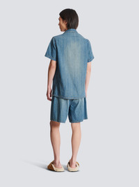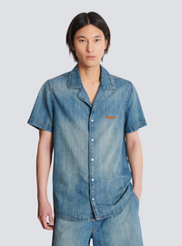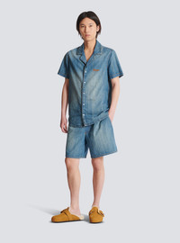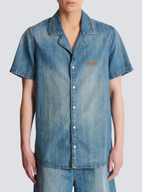 Denim pyjama shirt - Shirt collar - Short sleeves - Balmain embroidery on the chest - Faded denim - Button fastening - Relaxed fit - Model measures 186cm and wears a size M - Main material: 100% cotton - Made in Italy - Item: FH0HB041DG03