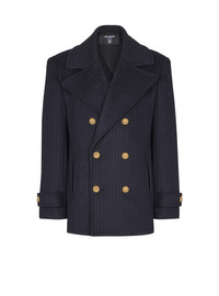 Short striped wool pea coat - Tailored collar - Long sleeves with tabs on the cuffs - Double-breasted fastening - Welt side pockets - Lined - Regular fit - Model measures 191cm and wears a size 48 - Main material: 75% merino wool 23% polyamide 2% other - Made in Italy - Item: FH0UA155WC87