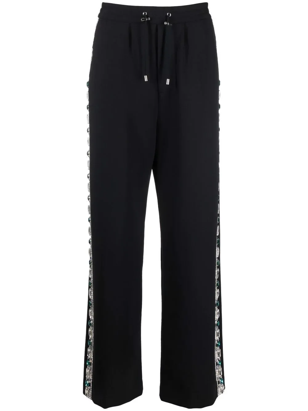 side-detail trousers black side stripe detailing drawstring fastening waist wide style Imported Composition Lining: Cotton 100% Outer: Polyamide 87%, Elastane 13% SIZE & FIT Model measurements Height 6 ft 2 in(1.88 m) Bust/Chest 36.61 in(93 cm) Hips 35.82 in(91 cm) Waist 27.95 in(71 cm) Washing instructions Specialist Cleaning