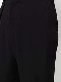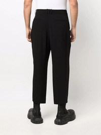 side folded crepe cropped trousers black cotton blend mid-rise concealed front fastening tonal stitching pleat detailing two rear welt pockets tapered leg cropped Made in Italy Composition Lining: Cotton 97%, Spandex/Elastane 3% Outer: Viscose 100% SIZE & FIT Model measurements Height 6 ft 1 in(1.85 m) Bust/Chest 37.79 in(96 cm) Hips 37.4 in(95 cm) Waist 30.7 in(78 cm) FittingInformation This piece fits true to size. We recommend you get your regular size Designed for a slim fit at the waist and loose over the leg Made with a mid-weight non-stretch fabric Washing instructions Dry Clean Only