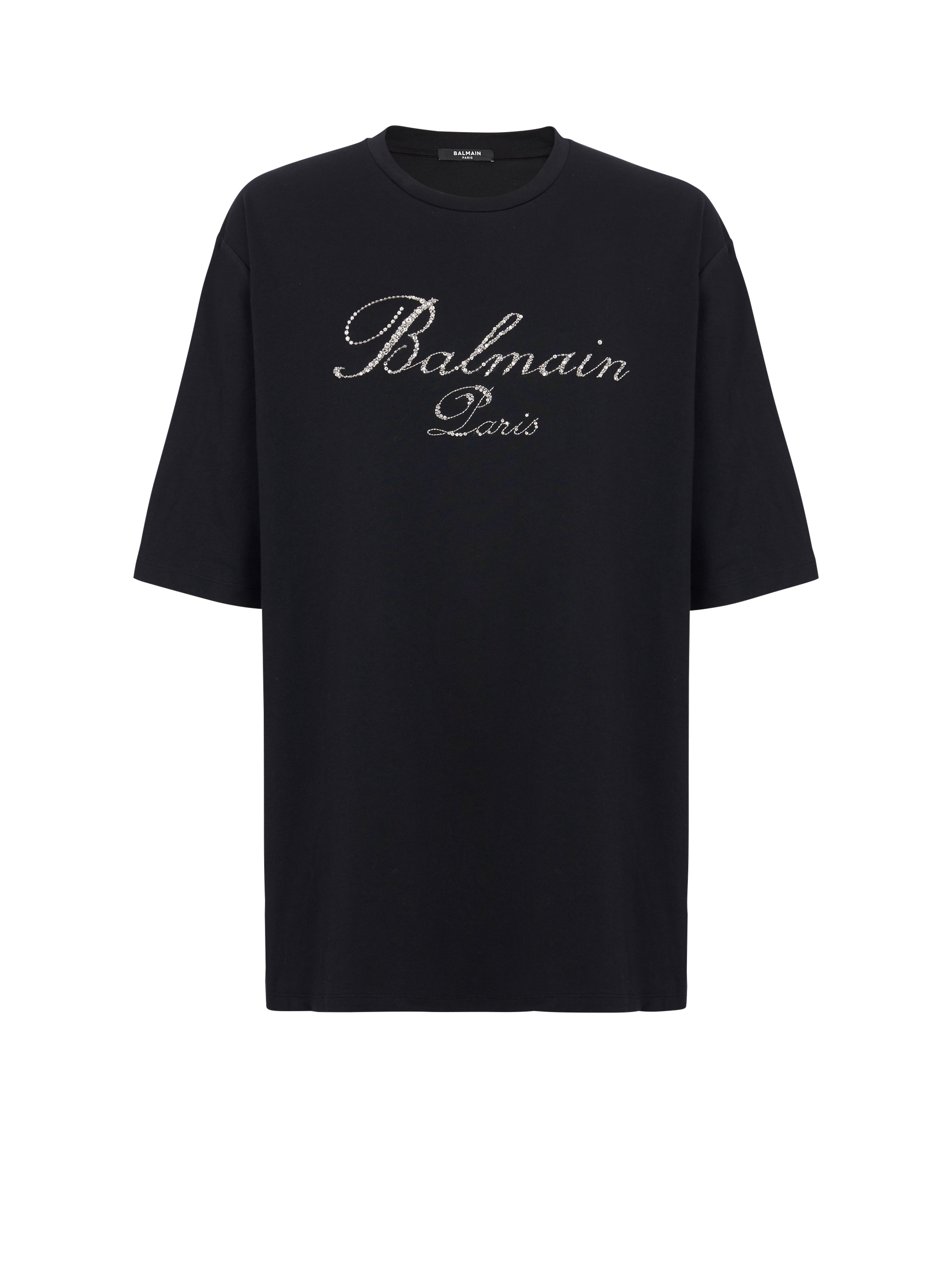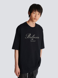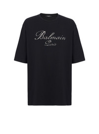 Balmain Signature embroidered T-shirt - Bead- and crystal-embroidered Balmain Signature logo - Relaxed fit - Round neck - Short sleeves - Model measures 189cm and wears a size M - Main material: 100% cotton - Made in India - Item: CH1EH015PC19