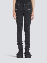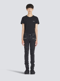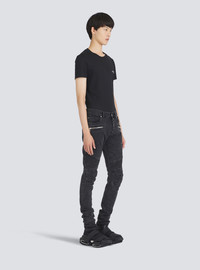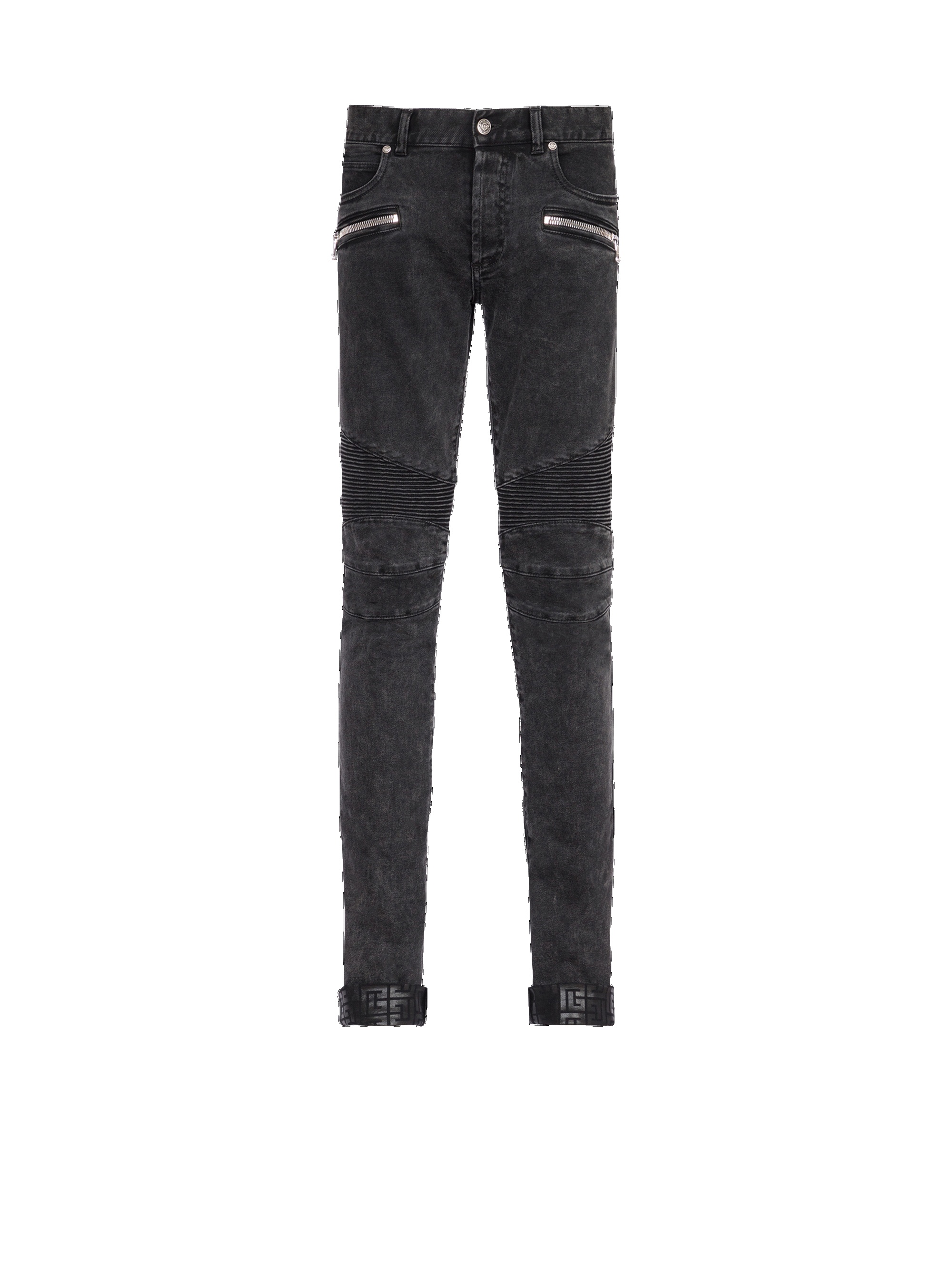 Cotton jeans Slim cut, two zip pockets, six pockets, belt loops, ridged panels, Balmain-monogrammed hem Slim cut Fits true to size, select your usual size The model is wearing size 30 The model's height is 186 cm / 6 ft 1 in, bust 93 cm / 36 in, waist 71 cm / 28 in, hips 89 cm / 35 in Made in Italy Material: 98% Cotton, 2% elastane Item: XH1MG008DB67