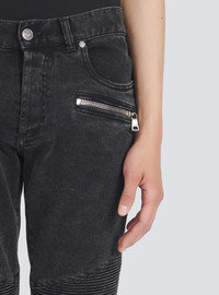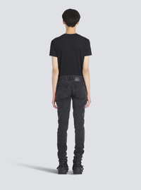 Slim cut ridged cotton jeans with Balmain monogram on hem