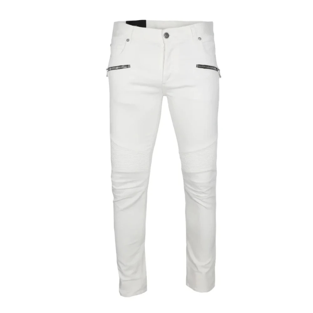 Elevate your style with these Balmain slim-fit jeans in white. Made with 98% cotton and 2% elastane, these jeans are perfect for the modern man. Designer color: White Designer ID: XH1MG005DB69