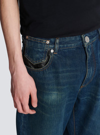 Straight-leg jeans with leather pockets