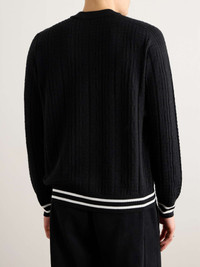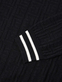 Balmain's sweater is knitted with a tonal version of the house's monogram. It's made from merino wool and detailed with contrasting stripes along the cuffs and hem. Size & Fit - Fits true to size. Take your normal size - Designed for a relaxed fit - Mid-weight, slightly stretchy fabric - Model is shown wearing a M - Model measures: chest 38"/ 96cm, height 6'2"/ 188cm Details & Care - Black and white merino wool - 100% merino wool - Dry clean