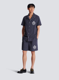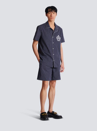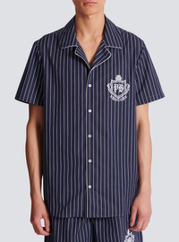 Striped pyjama shirt - Shirt collar - Short sleeves - College Emblem embroidery on the chest - Button fastening - Relaxed fit - Model measures 190cm and wears a size M - Main material: 100% cotton - Made in Moldova - Item: FH0HN137CG33
