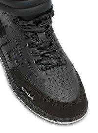 Balmain Swan Mid-Top trainers in calfskin and suede - Lace fastening and a velcro strap - Leather tongue with embossed PB logo label - PB logo insert on the side - Balmain logo embossed on the side and back - Textured rubber outsole with raised Balmain logo - Leather lining and insole - Main material: 100% calfskin - Made in Italy - Item: EM1VG376TCSB