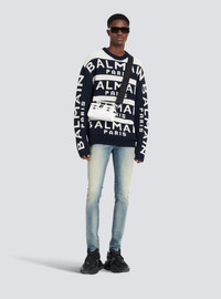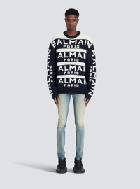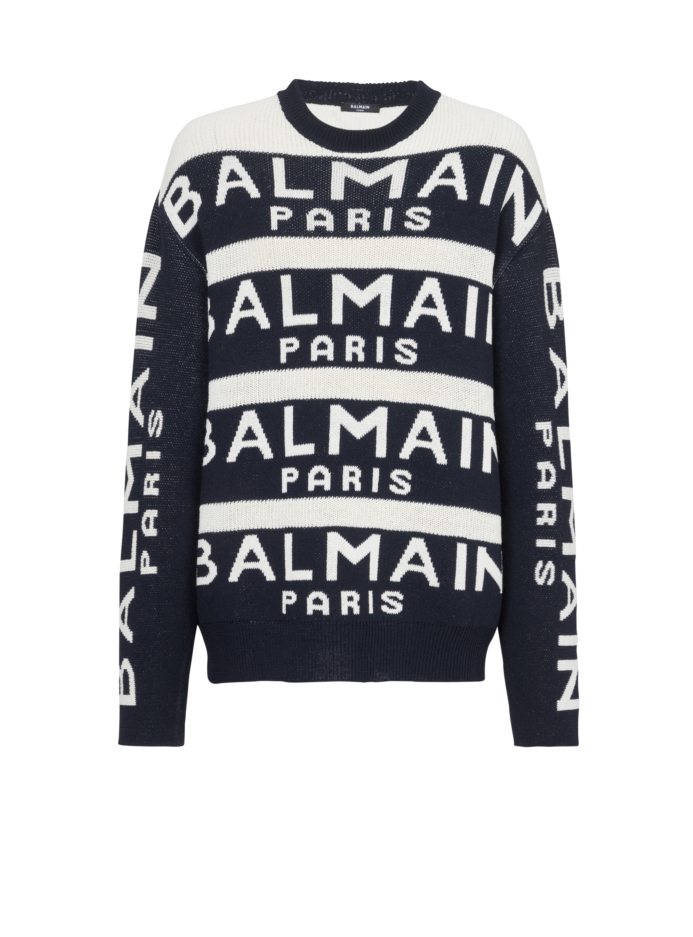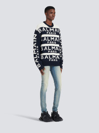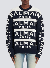 Embroidered sweater - Long sleeves - ribbing - crew neck - navy blue Balmain Paris embroidered logo - Fitted cut - Fits true to size: select your usual size - The model is wearing size M - The model's height is 189 cm - Material: 64% Virgin wool, 36% Polyamide - Made in Italy - Item: YH1KE010KC56