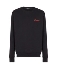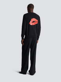Sweatshirt with Balmain Kiss print - Classic fit - Round neckline - Long sleeves - Contrasting Balmain Kiss logo printed on the chest - Contrasting Kiss motif printed on the back - Ribbed trim - Model measures 190cm and wears a size M - Main material: 100% cotton - Made in Italy - Item: DH0JQ040GE15100% of the cotton fibres used to make this garment are certified and organically farmed