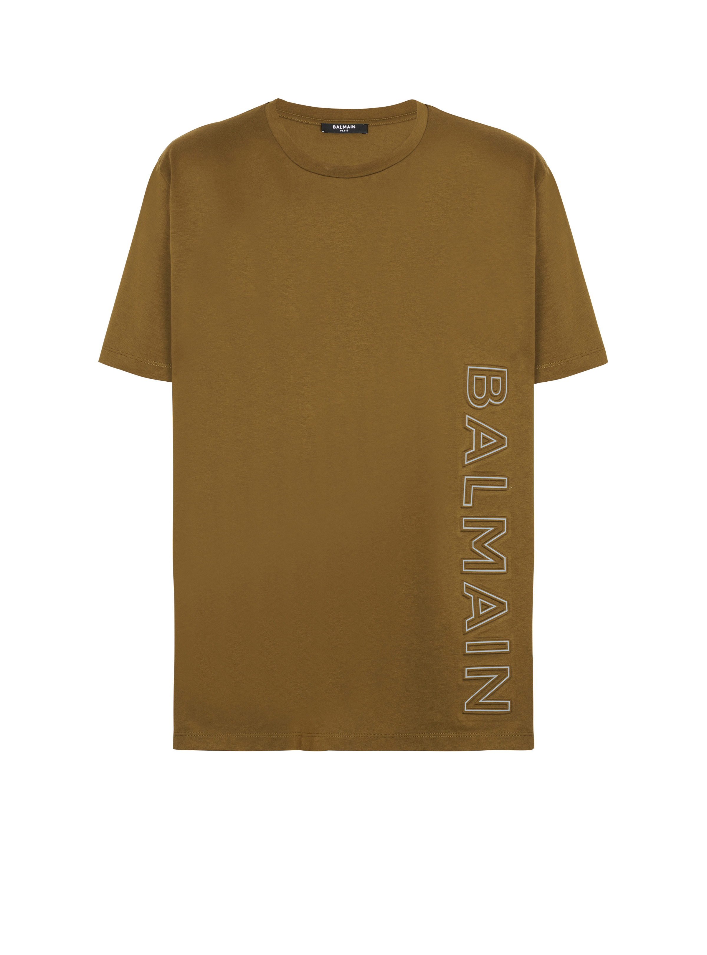 T-shirt in eco-responsible cotton with reflective Balmain logo Short sleeves, round neck, embossed Balmain logo Relaxed fit True to size (select your usual size) The model is wearing a size M The model’s height is 186 cm/6 ft 1 in, chest 93 cm/36 in, waist 71 cm/28 in and hips 89 cm/35 in Made in Portugal Material: 100% organic cotton Item: AH1EG010BC22