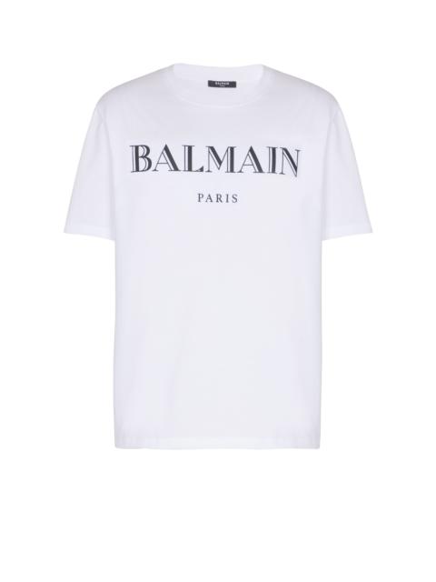 T-shirt with Balmain print - Regular fit - Round neck with ribbed trim - Short sleeves - Vintage Balmain logo printed on the front - Model measures 190cm and wears a size M - Main material: 100% cotton - Made in Portugal - Item: FH2EG000BD33