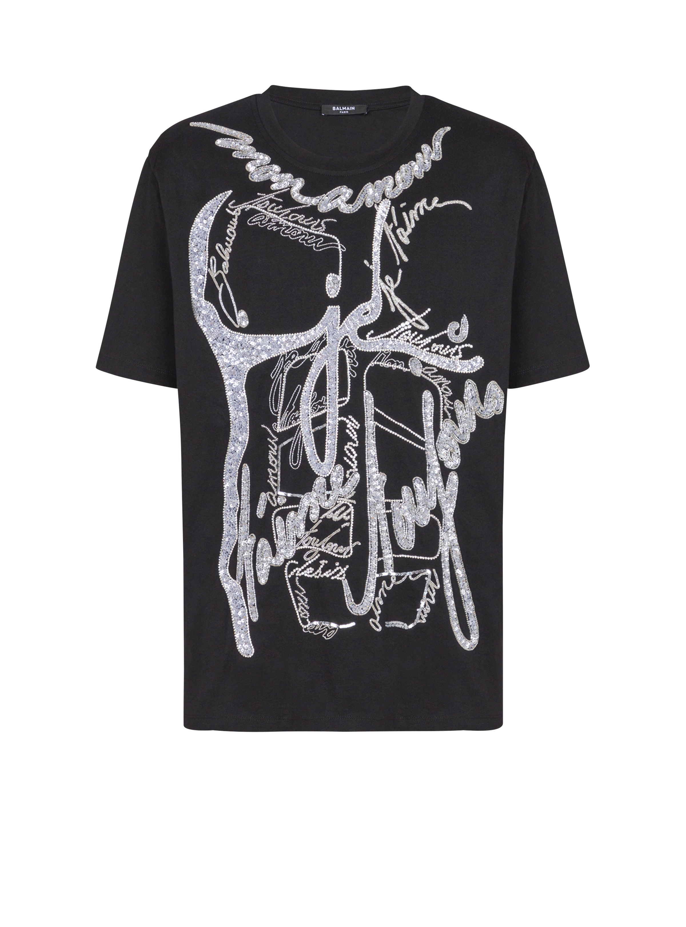 T-shirt with torso and "Love Letter" embroidery - Round neck with ribbed trim - Short sleeves - Embroidery with beads, sequins and crystals - Regular fit - Model measures 190cm and wears a size 46 - Main material: 100% cotton - Made in India - Item: EH1AM046PC72