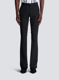 Tailored bootleg trousers in plain grain de poudre - Waistband with belt loops and a triple belt loop at the back - Zip and hook fastening under a placket - 2 Italian side pockets - 2 patch pockets at the back - Bootleg silhouette with a regular waist - Model measures 190cm and wears a size 48 - Main material: 100% wool - Made in Slovakia - Item: EH1PP075WC09100% of the wool fibres used to make this garment are sourced from sheep farms that are certified and animal welfare-friendly