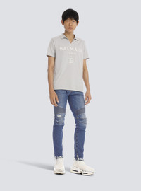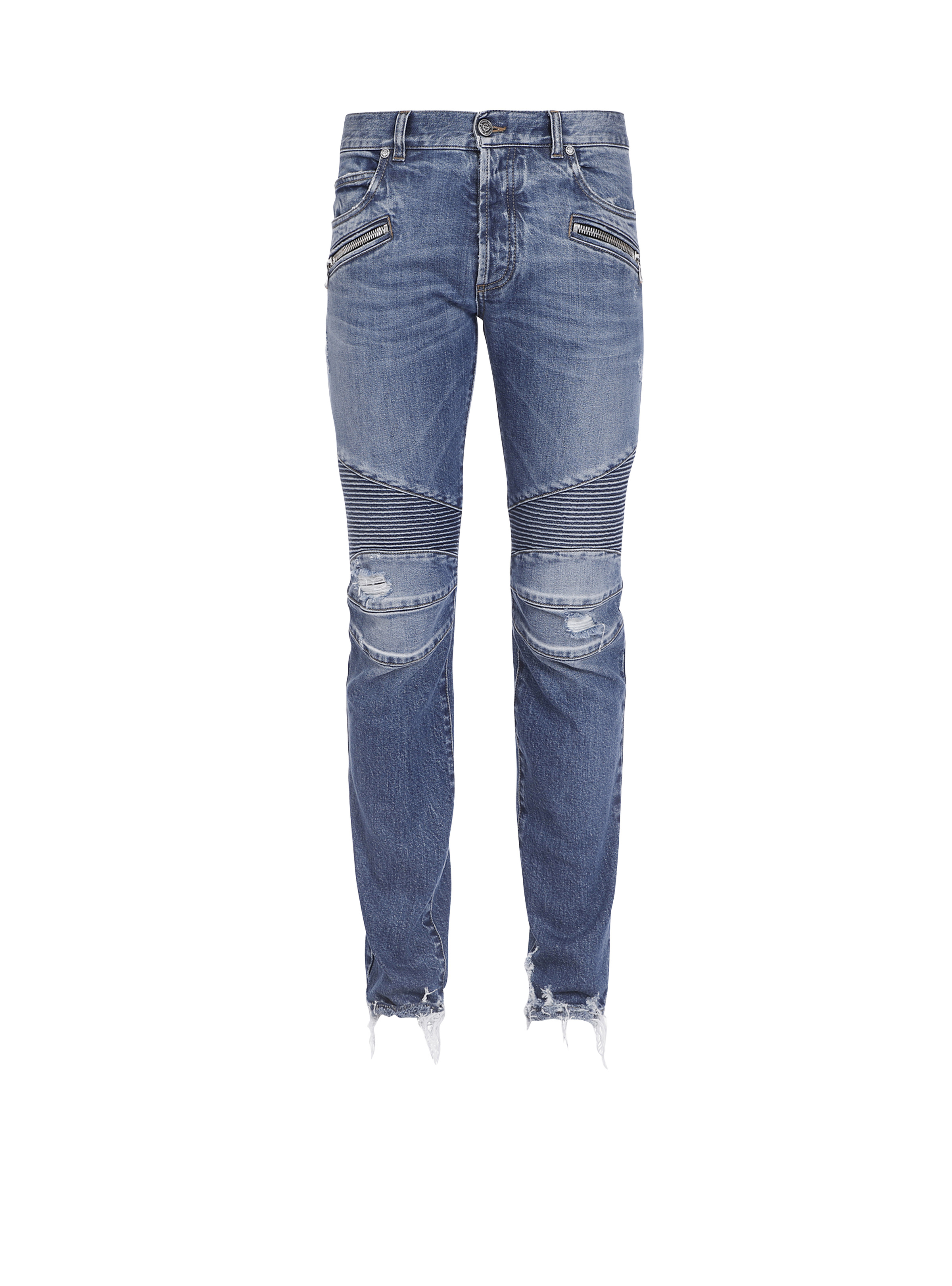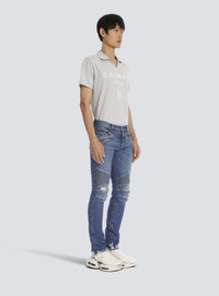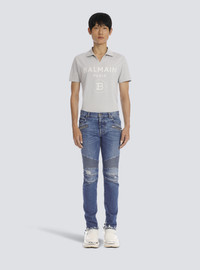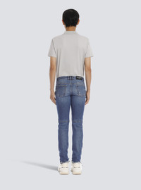 Tapered ripped blue cotton jeans