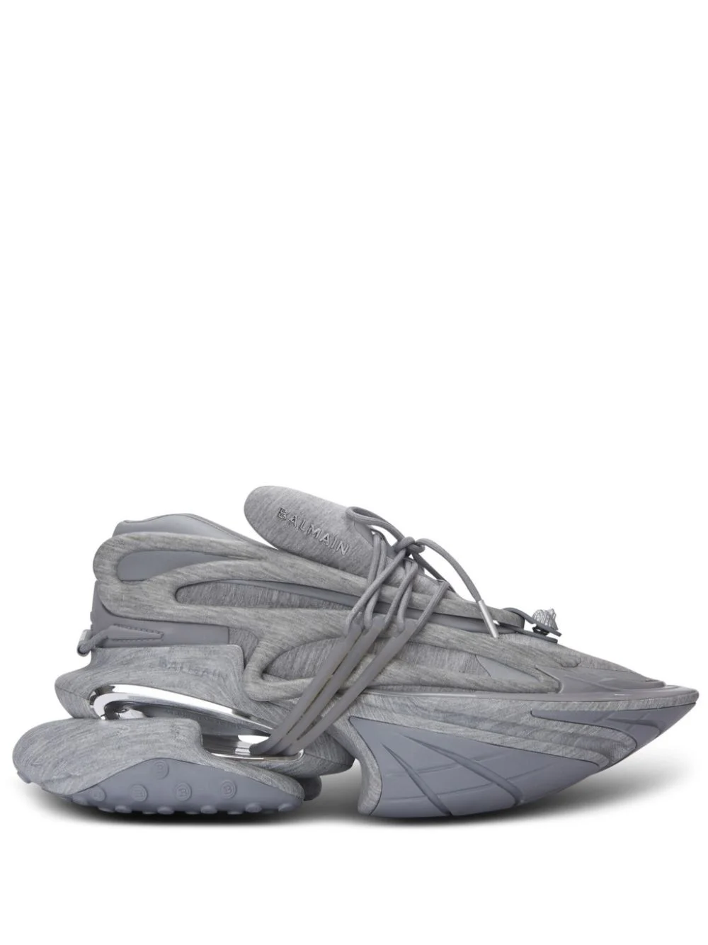 Unicorn sneakers Highlights - Medium grey - Panelled design - Leather trim - Melange effect - Front lace-up fastening - Branded heel counter - Logo pull-tab at the heel - Logo lettering - Logo plaque - Round toe - Branded insole - Oversize sole Imported Composition Outer: Nylon 82%, Elastane 14%, Thermoplastic Polyurethane (TPU) 4% Lining: Neoprene 100%, Calf Leather 100% Sole: Rubber 100%