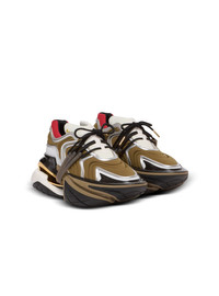 Unicorn Wave trainers in neoprene and calfskin - Padded upper with wave details - Lace fastening - 3D Balmain logo on the tongue and embossed on the side - Hollow sole with air-cushion effect, B studs - Neoprene lining - Leather insole - Sole height: 7 cm - Main material: 82% nylon 14% elastane 4% thermoplastic polyurethanes - Made in France - Item: FM1VI362KMRB
