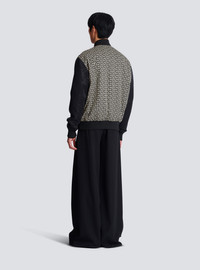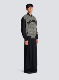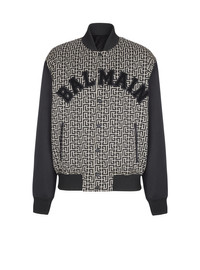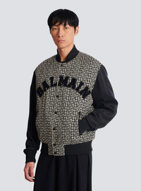 PB Labyrinth monogrammed jacquard Varsity jacket - Contrasting long sleeves - Boucle Balmain patches embroidered on the front - 2 slash side pockets - Front fastening with 7 Balmain-engraved press studs - Ribbed trim - Inside pocket with press stud - Twill lining - Classic fit - Model measures 190cm and wears a size 48 - Main material: 100% cupro - Made in Italy - Item: FH1TFA40MH62