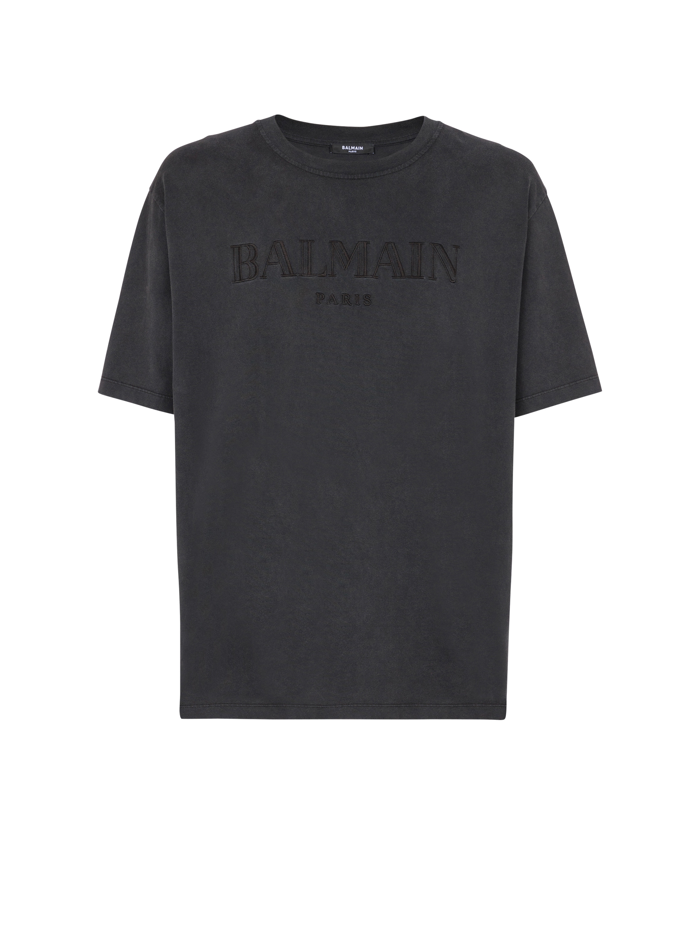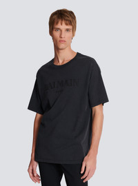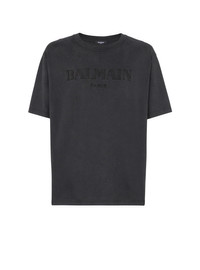 Vintage Balmain embroidered T-shirt - Relaxed fit - Round neck with ribbed trim - Short sleeves - Vintage Balmain logo in tone-on-tone embroidery - Pigment-dyed technique, unique piece - Model measures 189cm and wears a size M - Main material: 100% cotton - Made in Bulgaria - Item: CH0EG010BC72100% of the cotton fibres used to make this garment are organically farmed and GOTS-certified