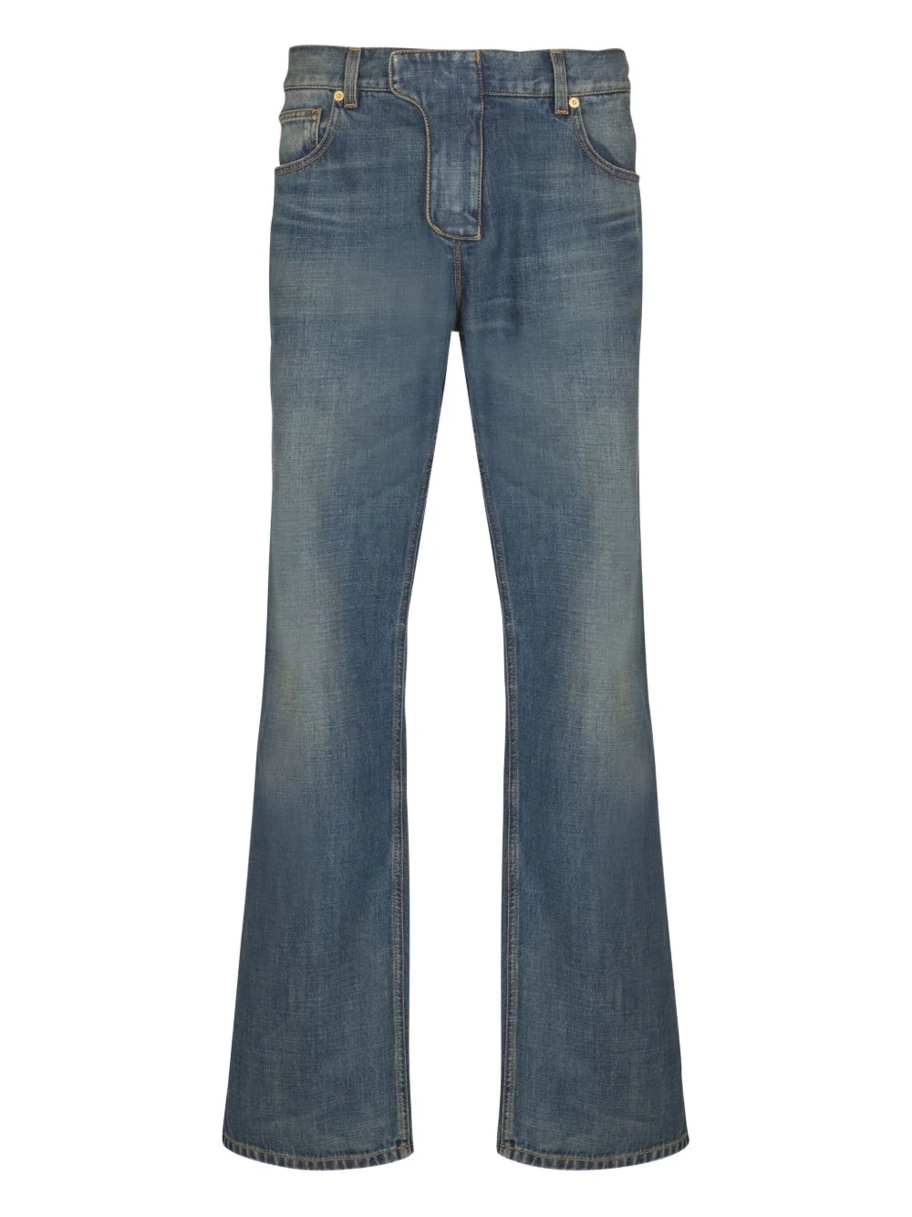 washed-effect straight-leg jeans Highlights - Washed dark-blue - Gold-tone hardware - Five-pocket styling - Straight leg - Button fly - Classic denim construction Imported Composition Cotton 100% Washing instructions Read Manufacturer Guidelines