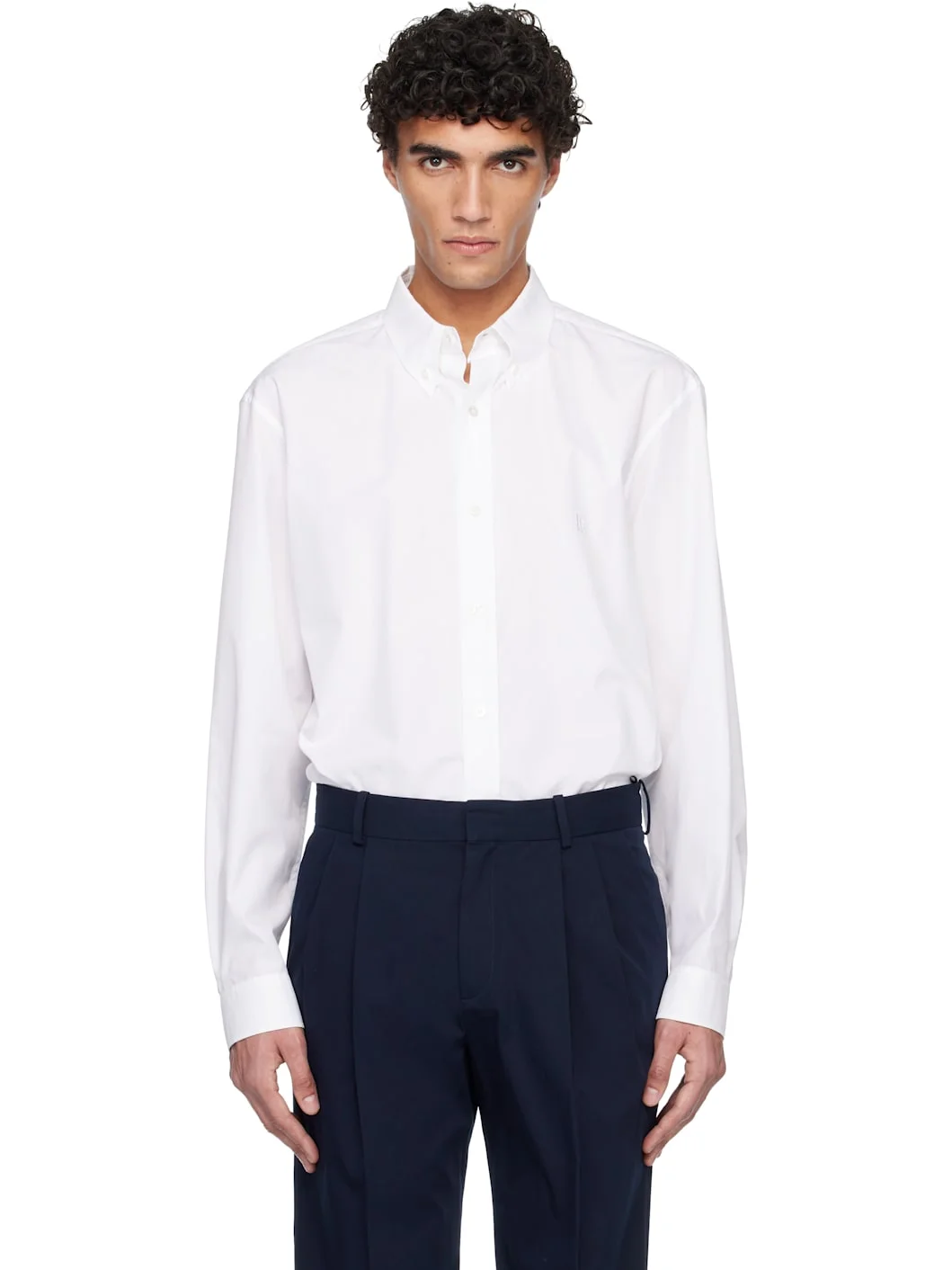 Cotton poplin shirt. · Spread collar · Button closure · Logo embroidered at chest · Shirttail hem · Barrel cuffs · Inverted box pleat at back yoke Supplier color: White 100% cotton. Made in Italy 261251M192007