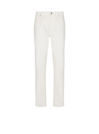 White denim jeans - 5 pockets - Belt loops at the waist, zip fly and "PB Balmain" button - PB embroidery on the back pocket - Leather label with Balmain Paris print - Regular fit - Model measures 190cm and wears a size 30 - Main material: 100% cotton - Made in Italy - Item: GH1MI043DG14100% of the cotton fibres used to make this garment are certified and organically farmed