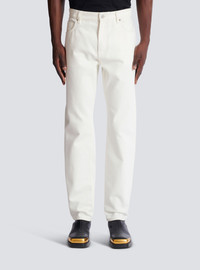 White denim straight-cut jeans