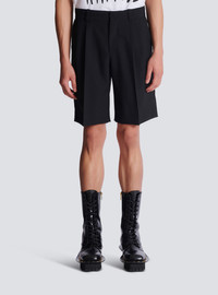 Wool darted Bermuda shorts - Waistband with belt loops - Embroidered Balmain Paris label on the back - Fly fastening with button and hook - Italian side pockets - Straight cut - Model measures 187cm and wears a size 48 - Main material: 100% virgin wool - Made in Bulgaria - Item: GH1PA185WD49100% of the wool fibres used to make this garment are sourced from sheep farms that are certified and animal welfare-friendly
