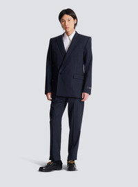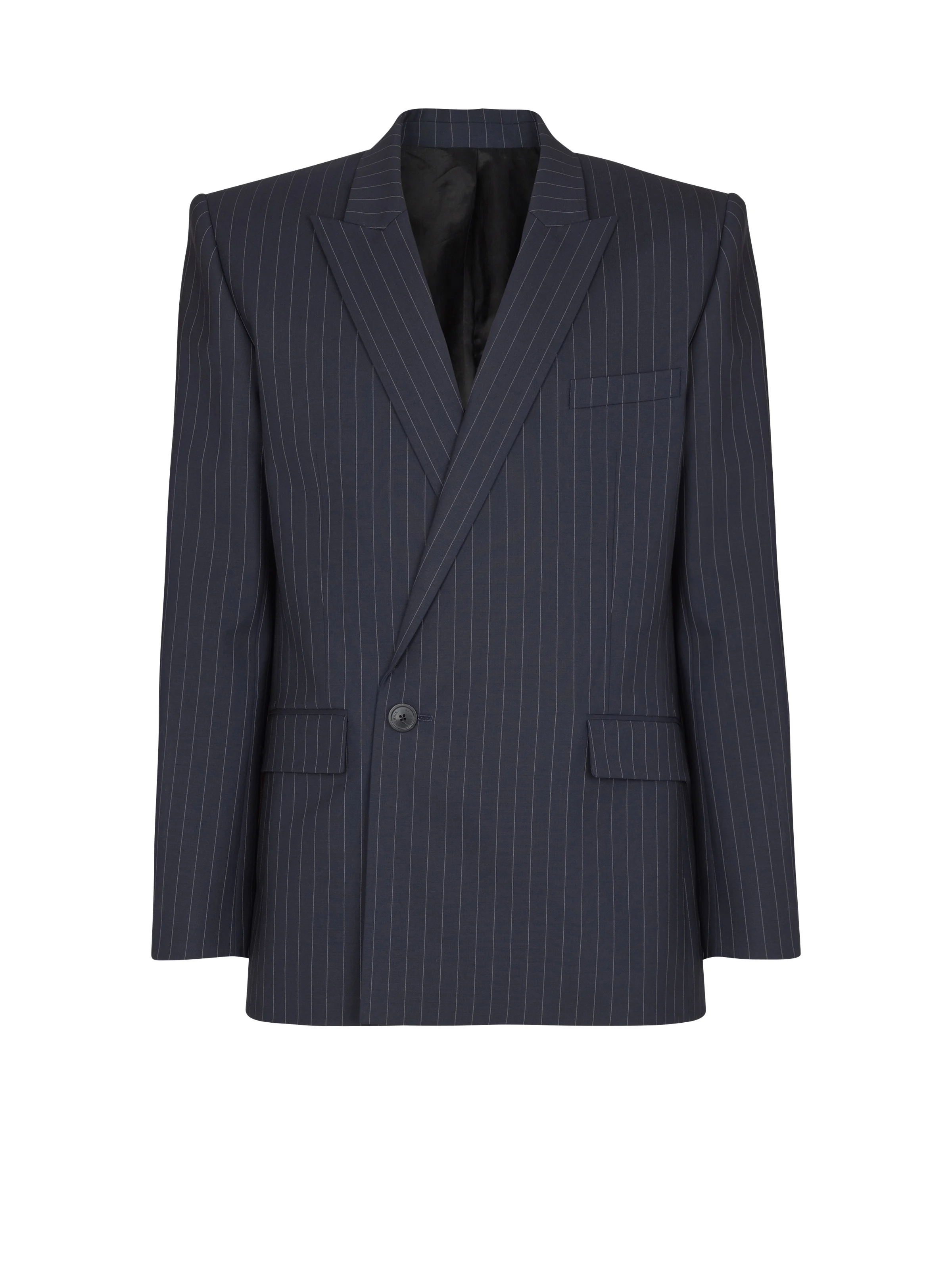 Wool pinstripe blazer - Italian tailored collarLong sleeves - Welt side pockets with a flap - Double-breasted fastening with 1 covered button - Lined - Straight cut - Model measures 186cm and wears a size 48 - Main material: 98% virgin wool 2% elastane - Made in Bulgaria - Item: FH0SE475WD25100% of the wool fibres used to make this garment are sourced from sheep farms that are certified and animal welfare-friendly