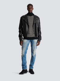 Wool sweater - Balmain monogram - Turtleneck - Long sleeves - Ribbing - Slim fit - Fits true to size - Select your usual size - The model is wearing a size M - The model's height is 187 cm - Main Main material: 55% Merino wool, 40% Linen, 5% Polyamide - Made in France - Item: CH1KF010KB03
