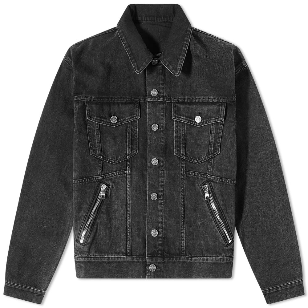 Elevate your denim rotation with this black jacket from Balmain. It’s made in Italy from a premium cotton-blend and is equipped with all the features you’d expect – a classic button closure, two chest pockets and a structured collar. What makes this one different though, is the two metal hardware zip pockets which sit at the side, for a luxe-yet-grunge finish. - 65% Polyester, 35% Cotton - Button Closure - 2 Chest Pockets - 2 Side Pockets - Leather Brand Patch - Made in Italy